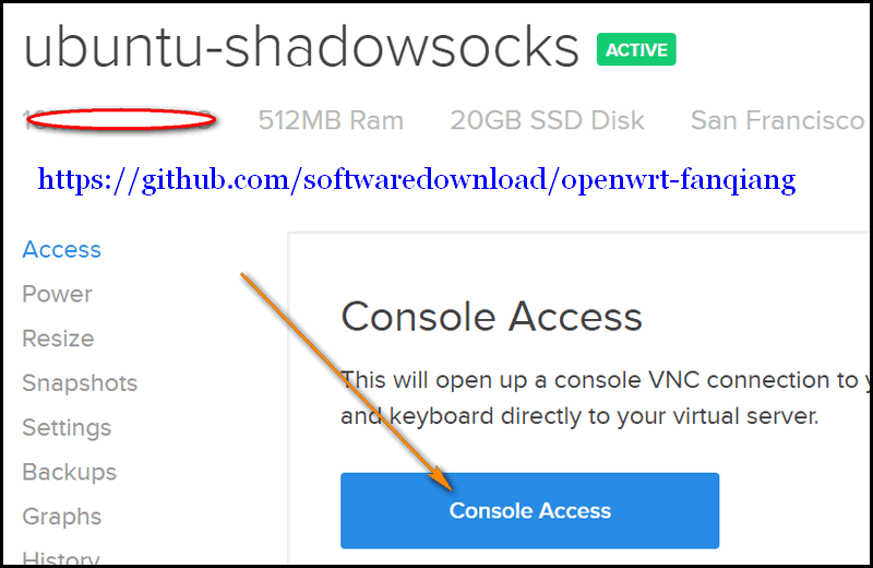 DO有个极为强大的功能,可以可以直接在管理后台Console Access 运行Linux命令管理VPS,相当于一个在线版的SSH: