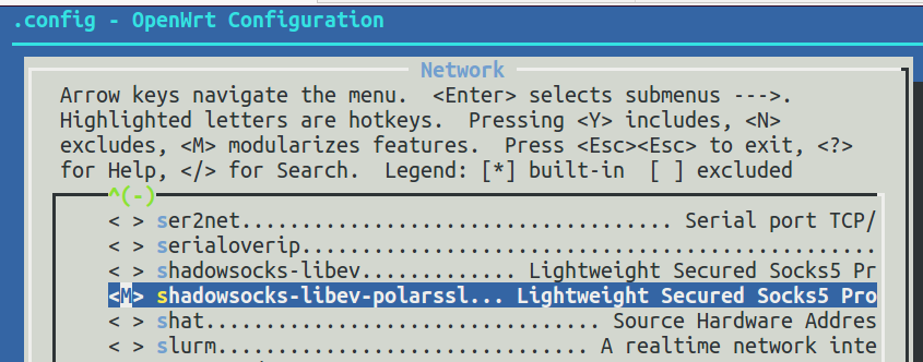 cd ~/Downloads/openwrt/package git clone https://github.com/shadowsocks/shadowsocks-libev.git